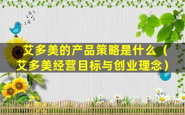 艾多美的产品策略是什么(艾多美经营目标与创业理念)