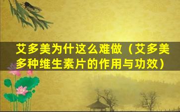 艾多美为什这么难做(艾多美多种维生素片的作用与功效)