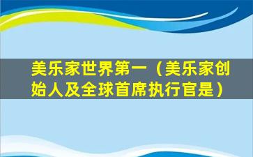 美乐家世界第一(美乐家创始人及全球首席执行官是)