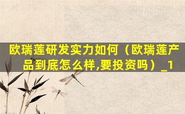 欧瑞莲研发实力如何(欧瑞莲产品到底怎么样,要投资吗)
