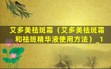 艾多美祛斑霜(艾多美祛斑霜和祛斑精华液使用方法)
