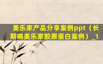美乐家产品分享案例ppt(长期喝美乐家胶原蛋白案例)