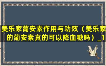 美乐家葡安素作用与功效(美乐家的葡安素真的可以降血糖吗)