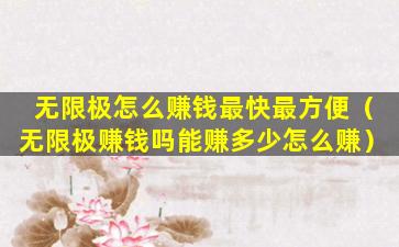 无限极怎么赚钱最快最方便(无限极赚钱吗能赚多少怎么赚)