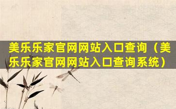 美乐乐家官网网站入口查询(美乐乐家官网网站入口查询系统)