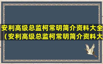 1、安利高级总监柯常明简介资料大全