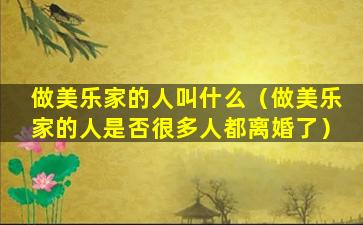 做美乐家的人叫什么(做美乐家的人是否很多人都离婚了)
