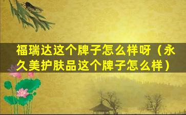 福瑞达这个牌子怎么样呀(永久美护肤品这个牌子怎么样)