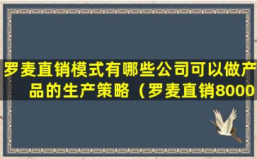 罗麦直销模式有哪些公司可以做产品的生产策略(罗麦直销8000,24000,40000怎么做的)