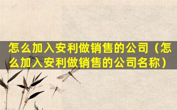 怎么加入安利做销售的公司(怎么加入安利做销售的公司名称)
