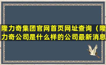 1、隆力奇集团官网首页网址查询