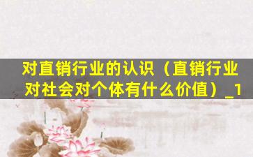 对直销行业的认识(直销行业对社会对个体有什么价值)