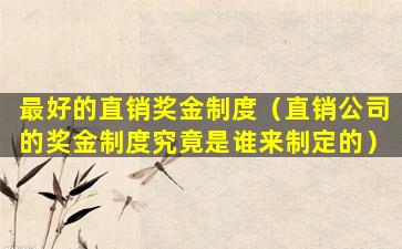 最好的直销奖金制度(直销公司的奖金制度究竟是谁来制定的)