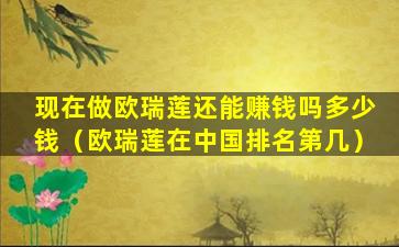 现在做欧瑞莲还能赚钱吗多少钱(欧瑞莲在中国排名第几)