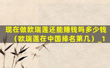 1、现在做欧瑞莲还能赚钱吗多少钱