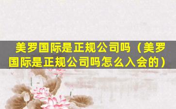 美罗国际是正规公司吗(美罗国际是正规公司吗怎么入会的)