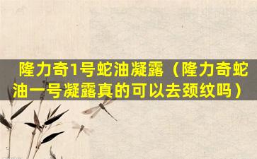 隆力奇1号蛇油凝露(隆力奇蛇油一号凝露真的可以去颈纹吗)