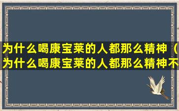 为什么喝康宝莱的人都那么精神(为什么喝康宝莱的人都那么精神不好)
