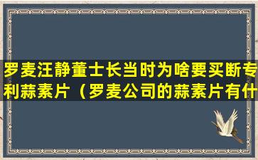 罗麦汪静董士长当时为啥要买断专利蒜素片(罗麦公司的蒜素片有什么功能效果好吗)