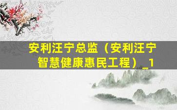 安利汪宁总监(安利汪宁智慧健康惠民工程)