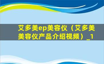 艾多美ep美容仪(艾多美美容仪产品介绍视频)