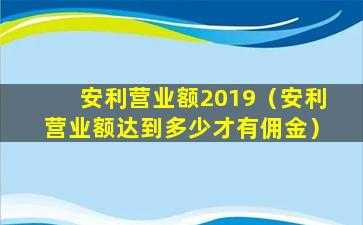 安利营业额2019(安利营业额达到多少才有佣金)