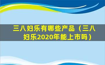 三八妇乐有哪些产品(三八妇乐2020年能上市吗)