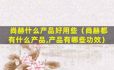 尚赫什么产品好用些(尚赫都有什么产品,产品有哪些功效)