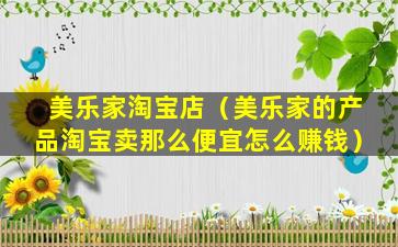 美乐家淘宝店(美乐家的产品淘宝卖那么便宜怎么赚钱)