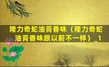 隆力奇蛇油膏香味(隆力奇蛇油膏香味跟以前不一样)