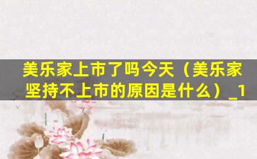 美乐家上市了吗今天(美乐家坚持不上市的原因是什么)