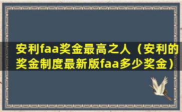 安利faa奖金最高之人(安利的奖金制度最新版faa多少奖金)