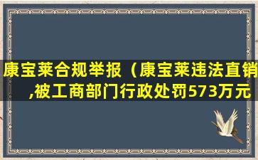 康宝莱合规举报(康宝莱违法直销,被工商部门行政处罚573万元!)