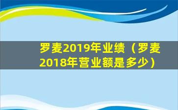 罗麦2019年业绩(罗麦2018年营业额是多少)