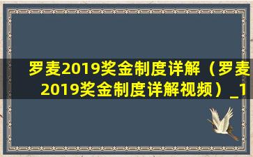 罗麦2019奖金制度详解(罗麦2019奖金制度详解视频)