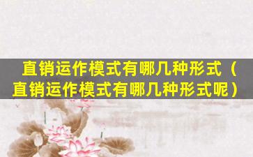 直销运作模式有哪几种形式(直销运作模式有哪几种形式呢)