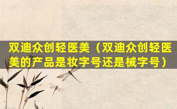 双迪众创轻医美(双迪众创轻医美的产品是妆字号还是械字号)