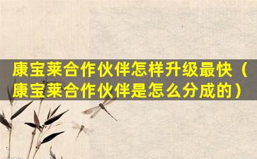 康宝莱合作伙伴怎样升级最快(康宝莱合作伙伴是怎么分成的)