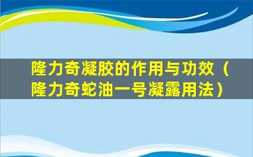隆力奇凝胶的作用与功效(隆力奇蛇油一号凝露用法)