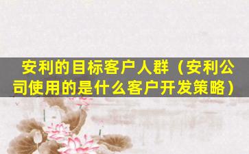 安利的目标客户人群(安利公司使用的是什么客户开发策略)