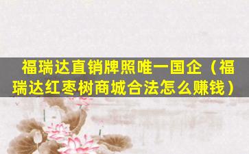 福瑞达直销牌照唯一国企(福瑞达红枣树商城合法怎么赚钱)