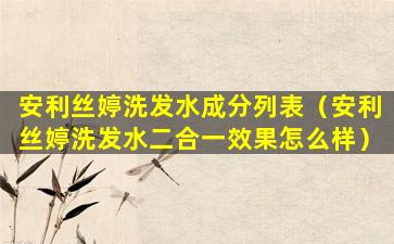 安利丝婷洗发水成分列表(安利丝婷洗发水二合一效果怎么样)