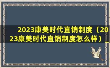 2023康美时代直销制度(2023康美时代直销制度怎么样)