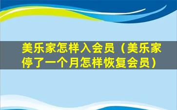 美乐家怎样入会员(美乐家停了一个月怎样恢复会员)