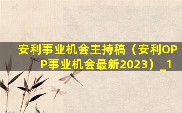 安利事业机会主持稿(安利OPP事业机会最新2023)