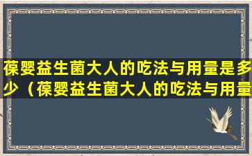 葆婴益生菌大人的吃法与用量是多少(葆婴益生菌大人的吃法与用量是多少克)