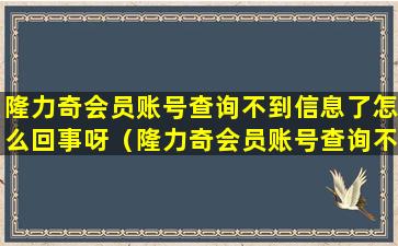 1、隆力奇会员账号查询不到信息了怎么回事呀