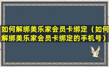 如何解绑美乐家会员卡绑定(如何解绑美乐家会员卡绑定的手机号)