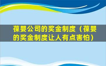 2、葆婴的奖金制度让人有点害怕