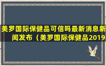 美罗国际保健品可信吗最新消息新闻发布(美罗国际保健品2019最新消息)